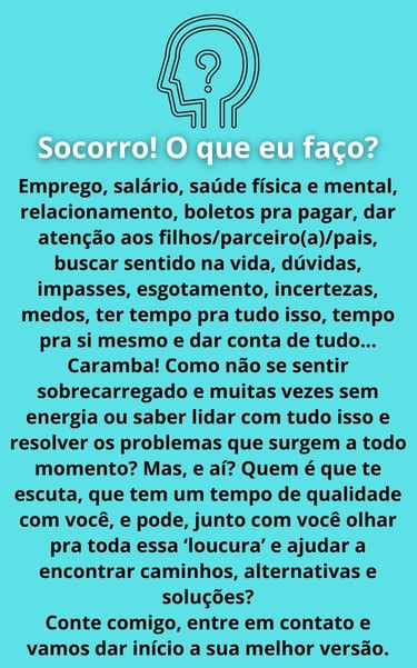 Insônia, ansiedade, episódios depressivos te acompanham, vontade de desistir, tristezas, brigas e pensa que até a felicidade não é pra você? Situações assim te distanciam das pessoas, das suas metas/objetivos e sonhos, e tem sentindo que não tem controle em setores da sua vida, que estão "desandando" e afastando da realidade que você tanto deseja.